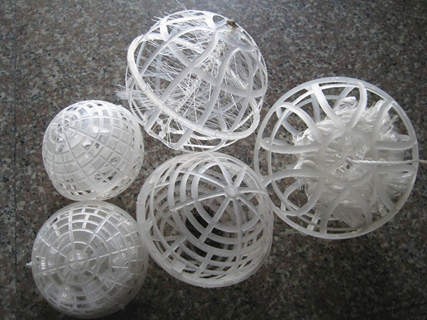 多孔生物懸浮球填料是目前國內污水處理系統生物膜法填料中研發的新產品。多孔生物懸浮球填料是用聚乙烯或聚丙烯材料注塑而成的圓形球體,分內外雙層,外部為中空魚網狀球體,內部為多扇立體式球體或塑料絲。