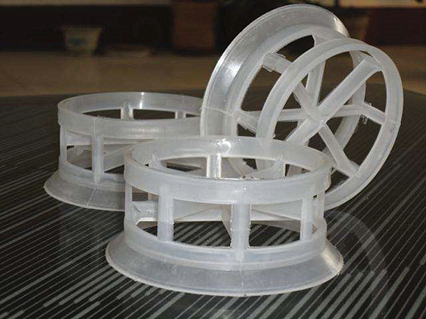 階梯環(huán)吸收了拉西環(huán)的特點,而對鮑爾環(huán)的改進,環(huán)的高徑比為1:2,并在一端增加了錐形翻邊,減少了氣體通過床層的阻力,并增大了通量,填料強度較高,由于其結(jié)構(gòu)特點,使氣液